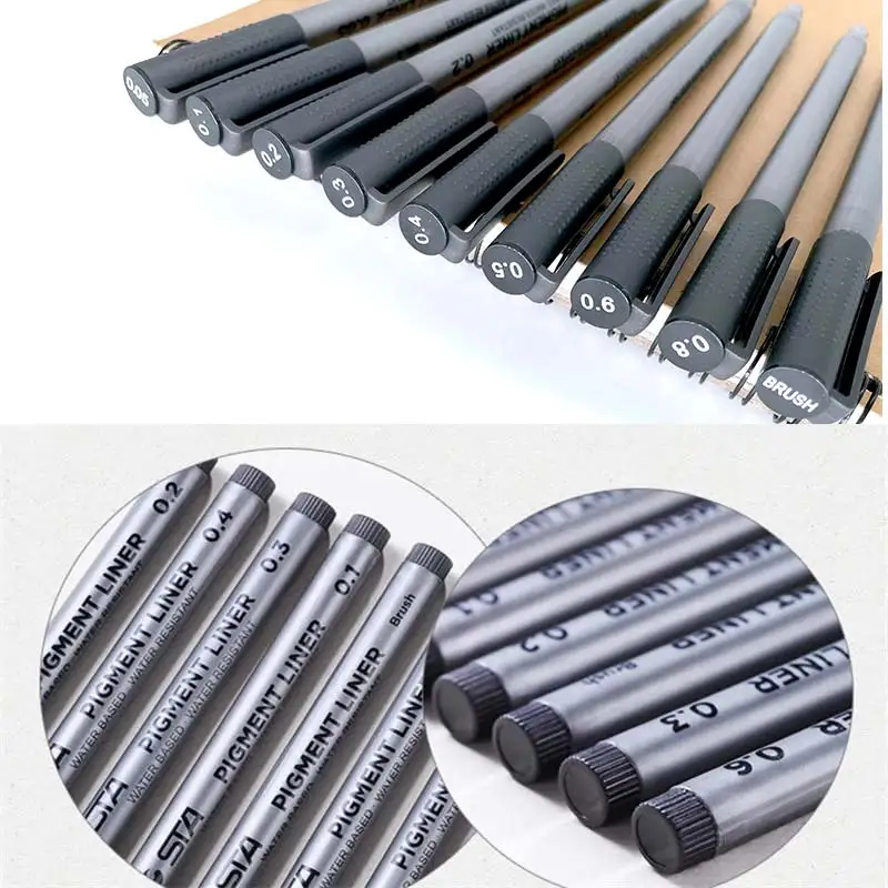 0.05-0.8mm Multi-dimensione Impermeabile Inchiostro ad asciugatura rapida Schizzo professionale Gancio Linea Penna ad ago Pennello Arte Scuola di cancelleria per ufficio-