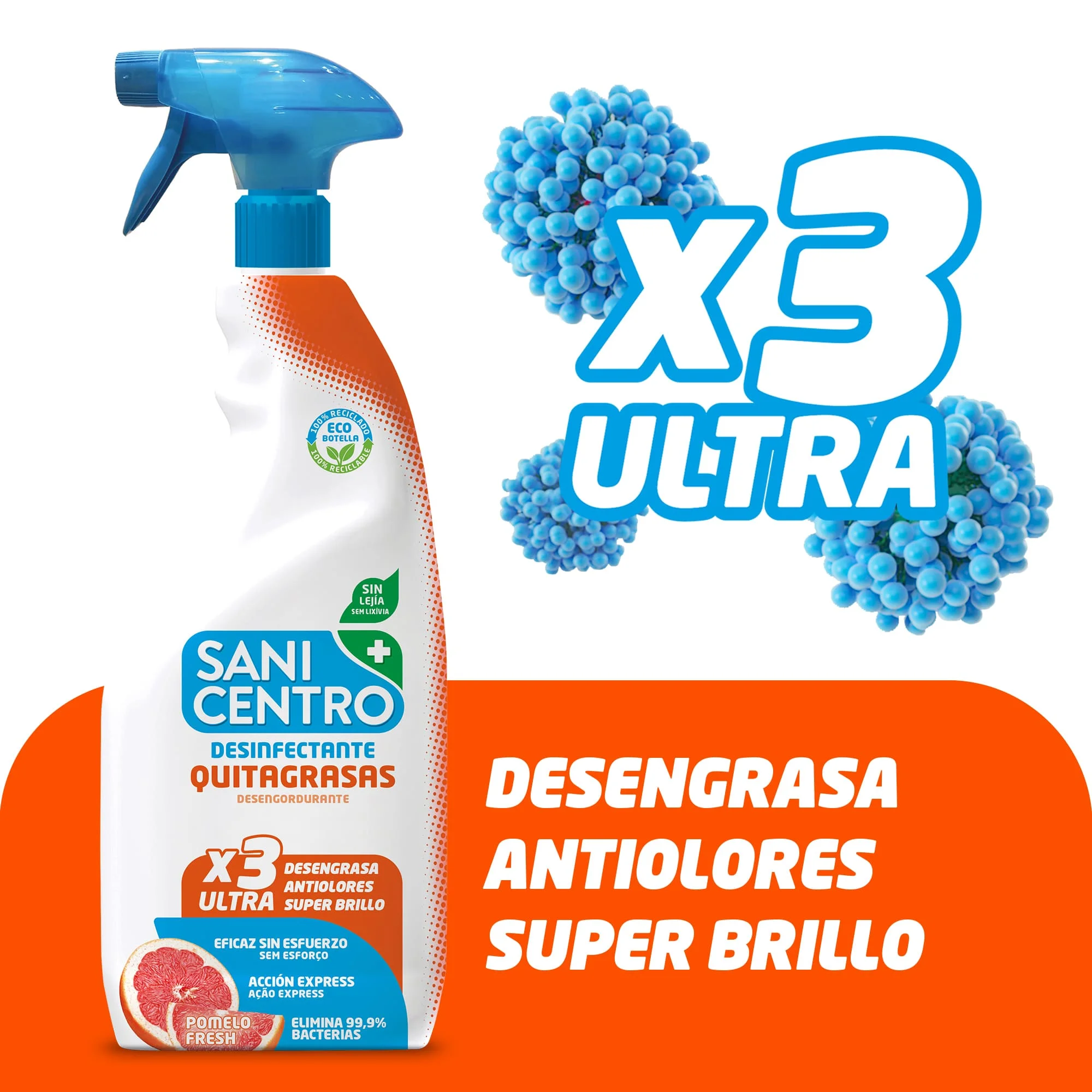 🧽 Rimuove il grasso incrostato in modo rapido ed efficace.//🦠 Disinfetta eliminando fino al 99,99% di germi e batteri.//🍋 PiacevoleAroma di agrumi.//🏠 Non rilascia vapori fastidiosi né macchia i vestiti.//🍽️ Adatto per superfici della cucina, elettrodomestici e utensili (risciacquare dopo l’uso nelle aree a contatto con gli alimenti).//🧴 Formato pulito e pratico per l’uso quotidiano.//♻️ Imballaggio inBottiglia ecologica 100% riciclata e riciclabile.