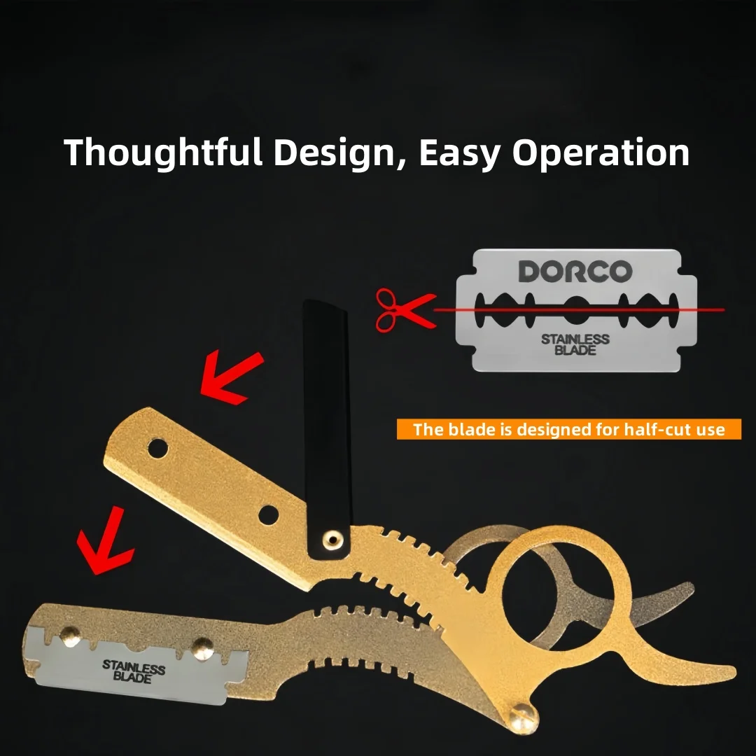 199-Rasoio per pollice in acciaio inossidabile e rasoio dritto tradizionale + raschietto per taglio capelli