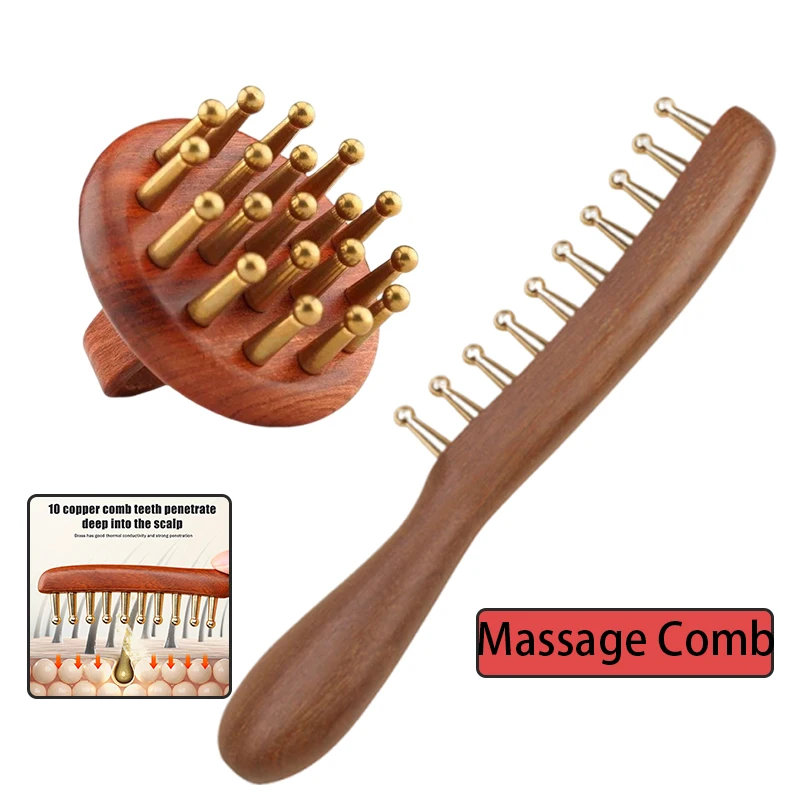 1Pcs Meridians Massage Comb Copper Sandalwood Meridians Fine Tooth Comb Needling Guasha Scalp Massage Brush Relax Body Massager