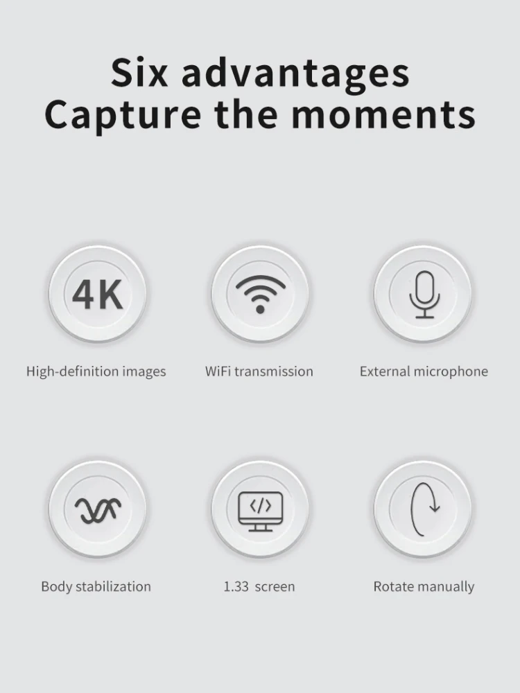 The lens, which can be rotated manually by 270 degrees, enables shots from different angles. In this way, front, side or creative shooting angles can be easily realized. Perfect for dynamic outdoor activities and varied video recordings.