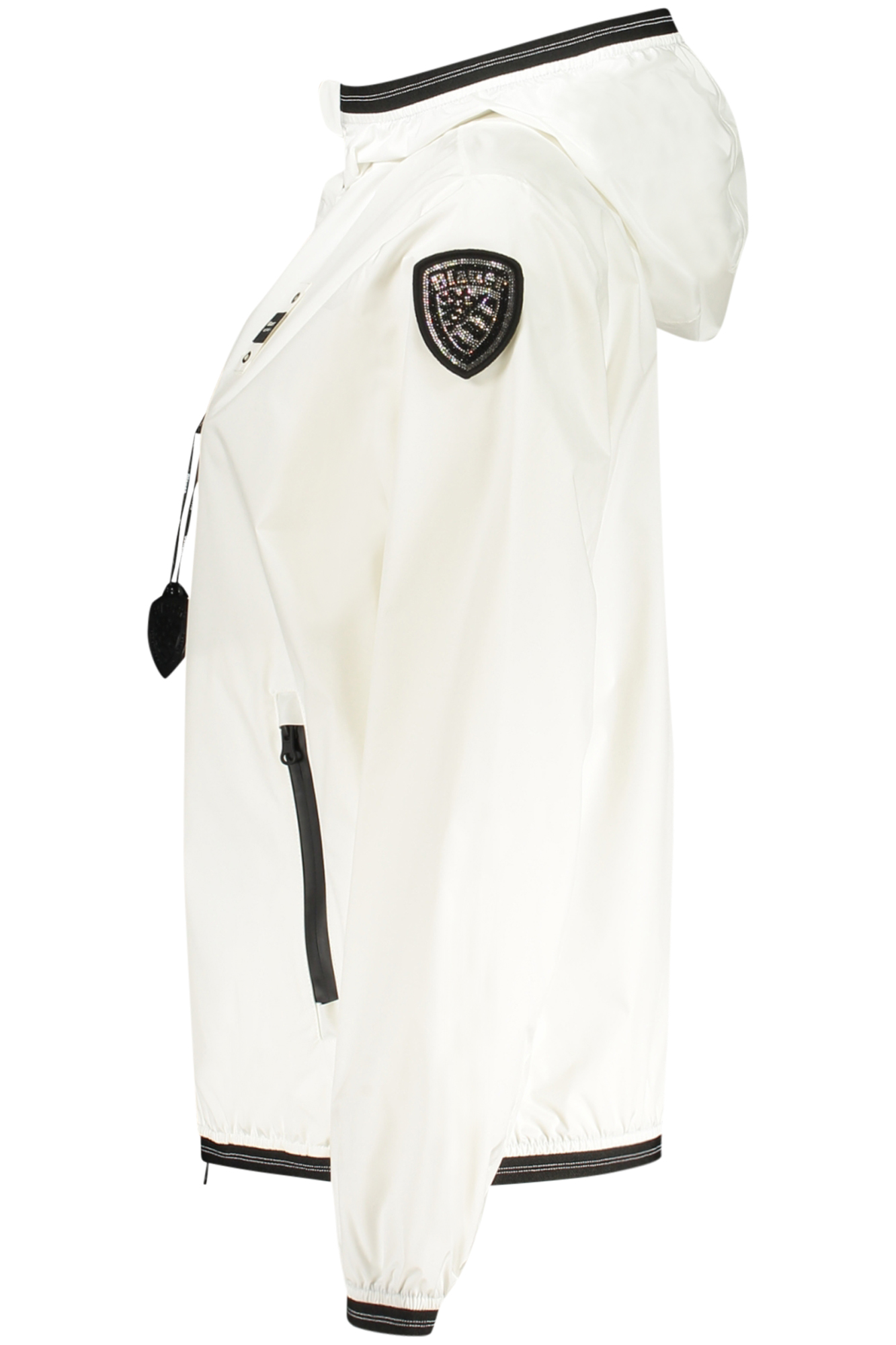 GIUBBOTTO MANICHE LUNGHE IMPERMEABILE CON CAPPUCCIO, SLIM FIT, 2 TASCHE ESTERNE, 2 TASCHE INTERNE, ZIP, APLLICAZIONE CON STRASS REMOVIBILE, LOGO