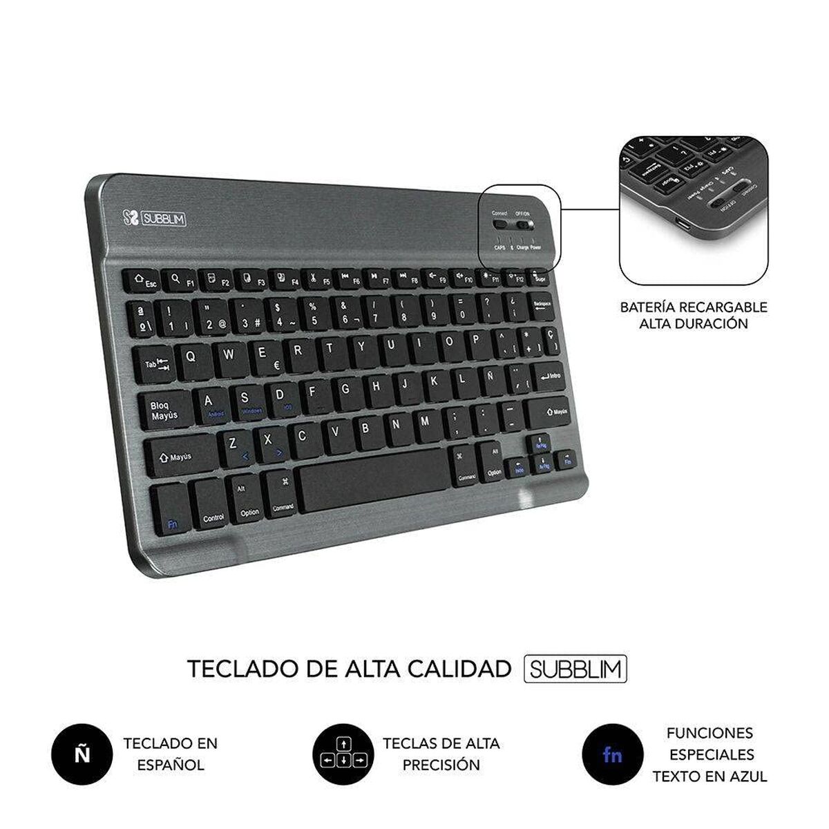 La custodia per tablet e tastiera Subblim SUB-KT2-BT0002 è una soluzione versatile e funzionale per chi desidera proteggere il proprio dispositivo e aumentare la produttività con comodità. Questo set include una tastiera QWERTY in spagnolo wireless con connessione Bluetooth, che consente una digitazione rapida e precisa, ideale per lavoro, studio o intrattenimento, mantenendo la compatibilità con quasi ogni tablet da 9 a 10,1 pollici. La tastiera è completamente ricaricabile tramite connessione micro USB, garantendo lunga autonomia e la comodità di non dover usare batterie usa e getta. Grazie al design ultrasottile ed ergonomico in elegante colore grigio, la custodia offre un aspetto moderno e professionale senza aggiungere peso superfluo, mentre il meccanismo a molla sotto ogni tasto assicura una digitazione veloce e riduce gli errori rispetto a uno schermo touch tradizionale. La tastiera rimovibile si fissa tramite un sistema magnetico robusto, permettendo di alternare facilmente tra l’uso della tastiera e quello del tablet separatamente, ideale per lavoro flessibile o in movimento. Inoltre, la custodia integra un sistema di spegnimento automatico per preservare la batteria e dispone di un supporto regolabile che aiuta a trovare l’angolo di visione più comodo per leggere, scrivere o guardare contenuti multimediali. La compatibilità universale, l’accesso completo alle funzioni del tablet anche con la custodia inserita e i materiali resistenti utilizzati rendono questo accessorio Subblim una scelta di rilievo nella sua categoria. In sintesi, la custodia e tastiera SUB-KT2-BT0002 offre protezione, praticità e design a qualsiasi tablet compatibile, bilanciando ergonomia e funzionalità per un uso quotidiano intensivo e confortevole.
