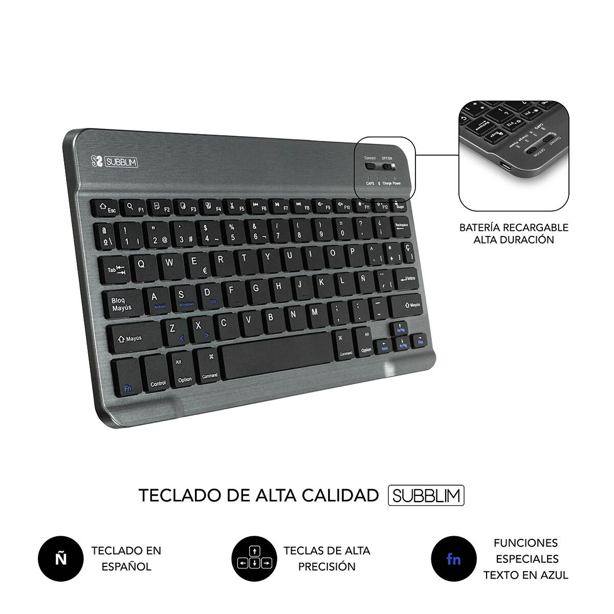 La custodia per tablet e tastiera Subblim Keytab Pro Bluetooth modello SUB-KT2-BT0003 è un accessorio progettato per tablet con schermi tra 10,1” e 10,8” che unisce protezione e funzionalità. Questa custodia di colore rosso integra una tastiera wireless Bluetooth con layout QWERTY in spagnolo, ideale per chi necessita di un’esperienza di scrittura comoda ed efficiente in mobilità. La tastiera presenta un design ergonomico che facilita la digitazione prolungata, oltre a un sistema di spegnimento automatico per ottimizzare la durata della batteria ed evitare consumi inutili. Con le sue 205 tastiere, garantisce una pressione precisa e rapida, essendo compatibile con la maggior parte dei tablet standard nella fascia di dimensioni indicata. La connettività Bluetooth assicura una connessione stabile e senza cavi, facilitando la portabilità del set e il comfort nell’uso quotidiano. La custodia è realizzata con materiali che offrono protezione adeguata contro urti e graffi, mantenendo il dispositivo sicuro durante il trasporto. Questo accessorio è perfetto per utenti che vogliono trasformare il tablet in una postazione di lavoro più versatile, facilitando la scrittura di testi, email o la navigazione internet con maggiore comodità. Nel complesso, il Subblim Keytab Pro offre un equilibrio tra praticità, design e tecnologia wireless che risponde alle esigenze di produttività e protezione del dispositivo. Questa custodia con tastiera rappresenta una soluzione completa e funzionale per ampliare l’uso del tablet in ambito professionale o educativo.