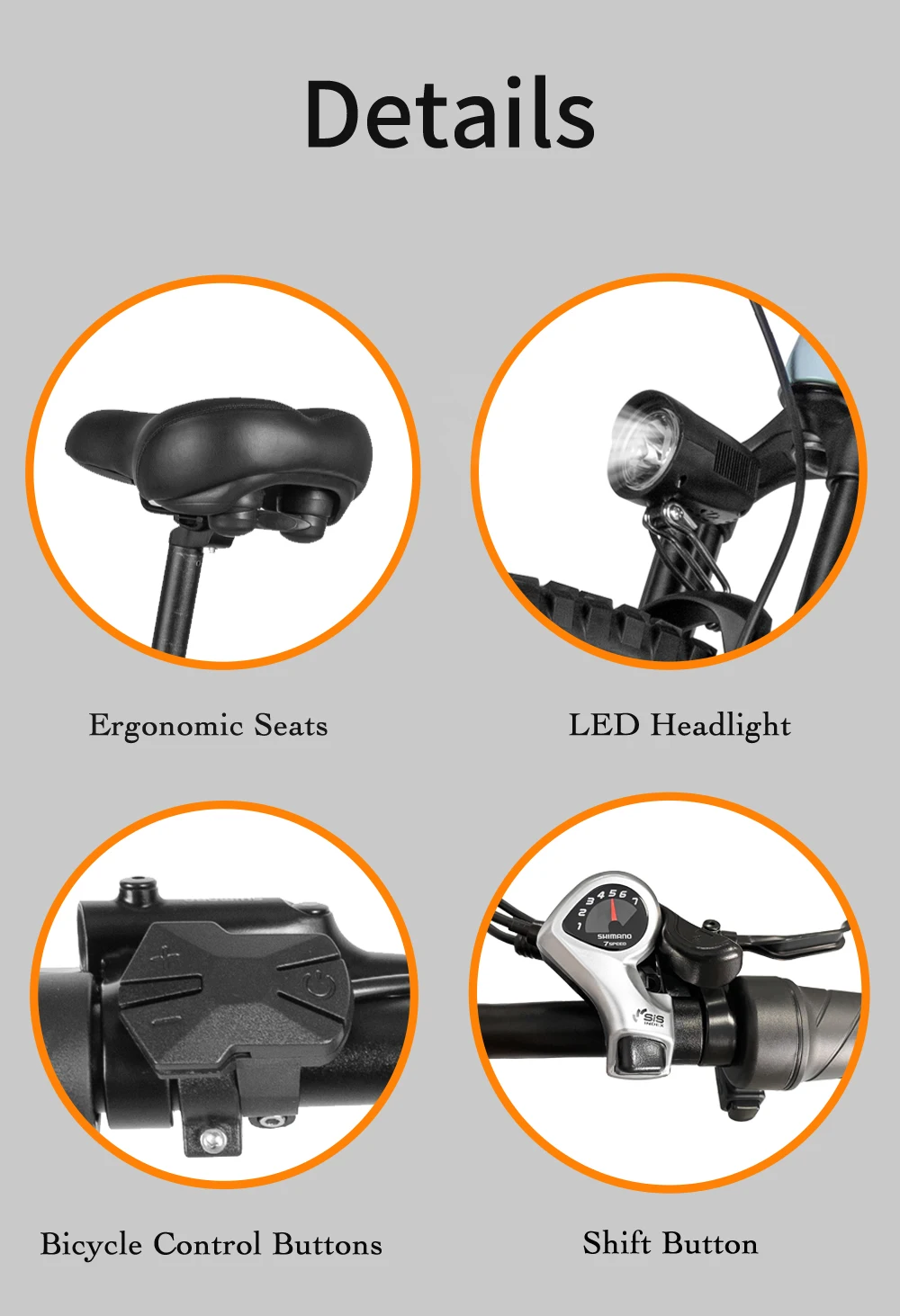 Il telaio di questa bicicletta elettrica è realizzato in materiale in lega di alluminio leggero e ad alta resistenza, che non solo garantisce la stabilità del veicolo, ma riduce anche notevolmente il peso della carrozzeria, facilitandone il trasporto e il parcheggio. Dotato di a 1000 W motore ad alta potenza e ad alte prestazioni, l’interno con design a stella presenta i vantaggi di un consumo energetico estremamente basso e silenzioso, che può migliorare la conversione della coppia e dell’efficienza energetica.I pneumatici adottano CST 27,5*2.4 pneumatici con motivo granulare, che hanno una forte presa durante la svolta, prevengono lo slittamento e aumentano le prestazioni di movimentazione del veicolo.Il SHIMANO 7 velocità il sistema di trasmissione offre maggiore stabilità, cambiamenti più fluidi e qualità superiore.La combinazione di colori del corpo è principalmente semplice e alla moda e offre molteplici scelte di colori per soddisfare le esigenze personalizzate dei diversi utenti.Inoltre, i fari a LED integrati non solo migliorano la sicurezza del ciclismo notturno, ma aggiungono anche un senso tecnologico al veicolo.