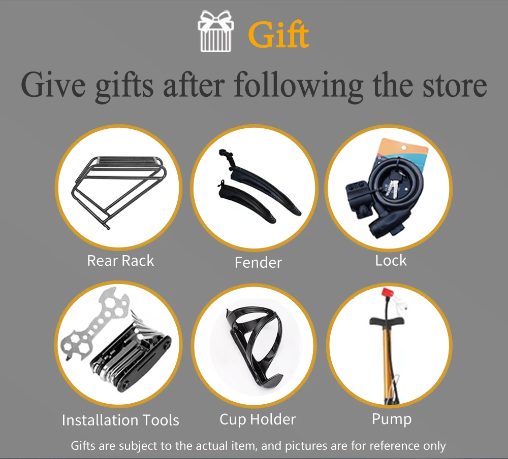 Alcuni dei regali sono già installati sulla bici e altri devono essere installati da soli.Non è possibile specificare i regali.Prevarrà gli articoli reali.