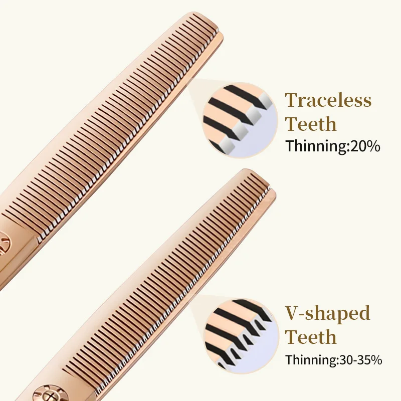 Fenice 6.5/7.0 pollici JP440C Oro rosa Toelettatura di cani da compagnia Forbici curve arrotinate/assicate Cesoie per sfoltire i denti senza traccia/a forma di V