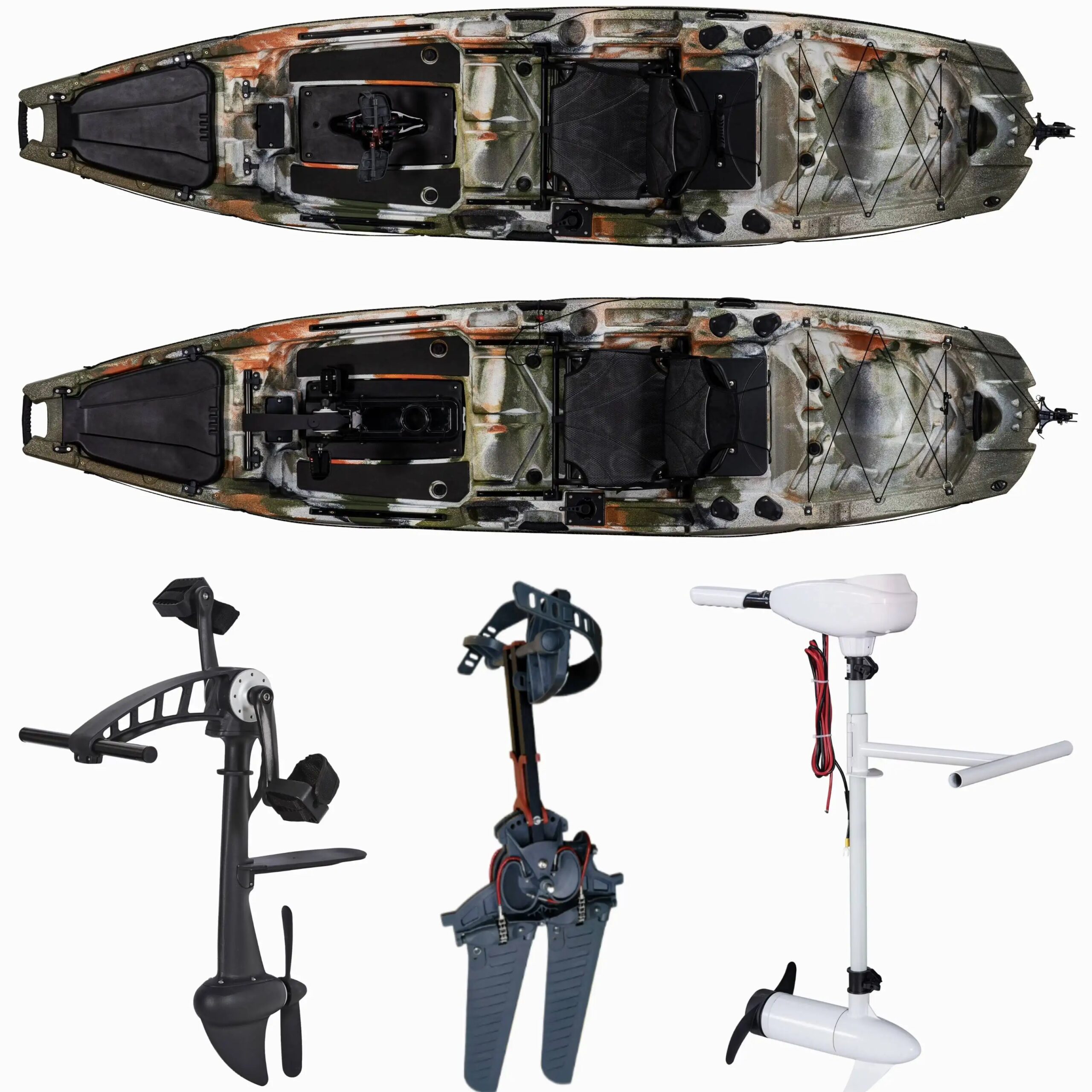 Kayak funzionale a pedale per pesca in mare per due persone disponibile con elica Flipper e motore da traina