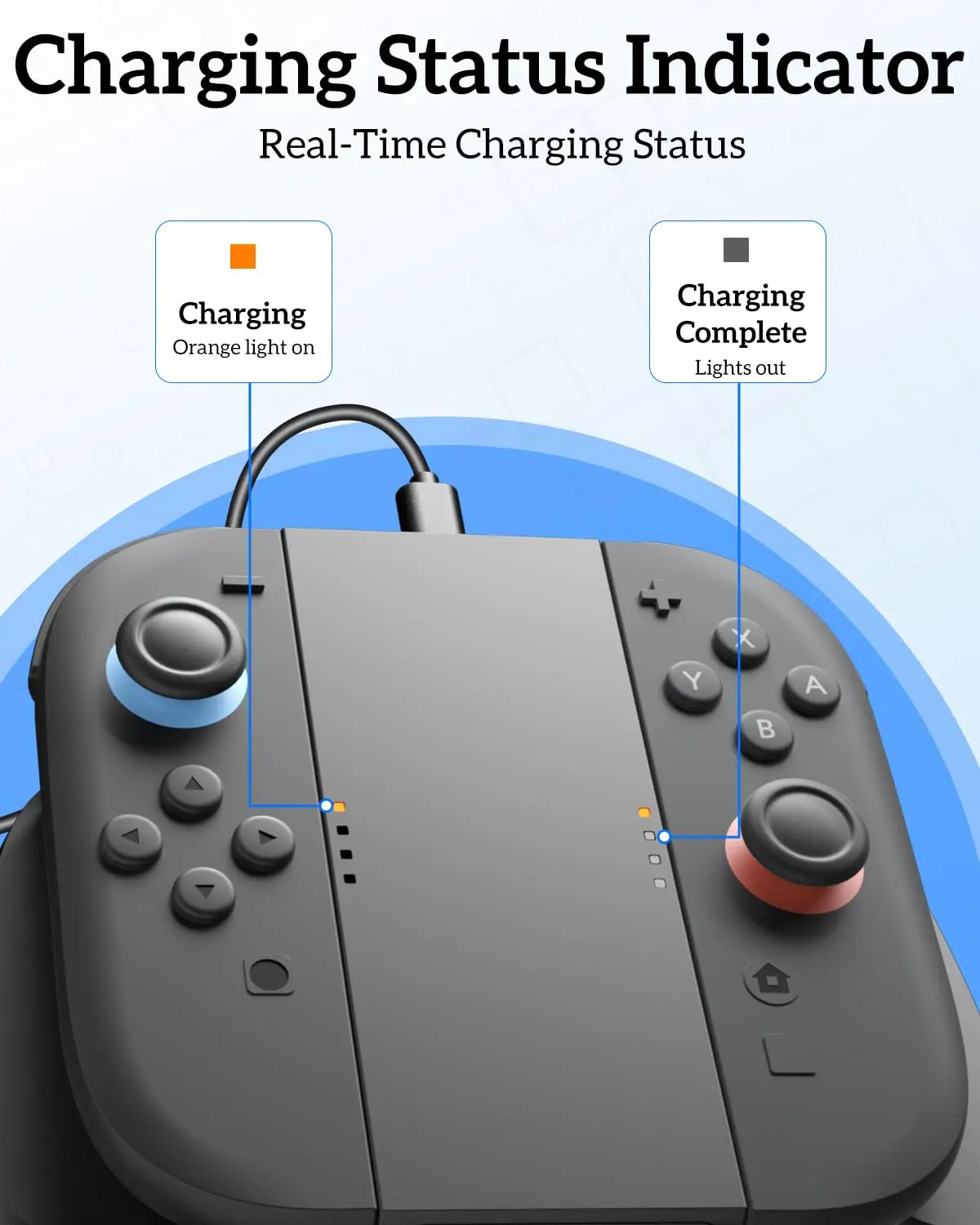 【 Magnetic Connection & Easy to Use】:Switch 2 Joy-Con handle is automatically magnetically attached when it is close to the charging handle and connects to the power source through the type-c charging cable.The charging indicator on the Switch 2 Joy-Con charging handle shows the charging status: the orange light is on when it is charging, and goes off when it is fully charged.