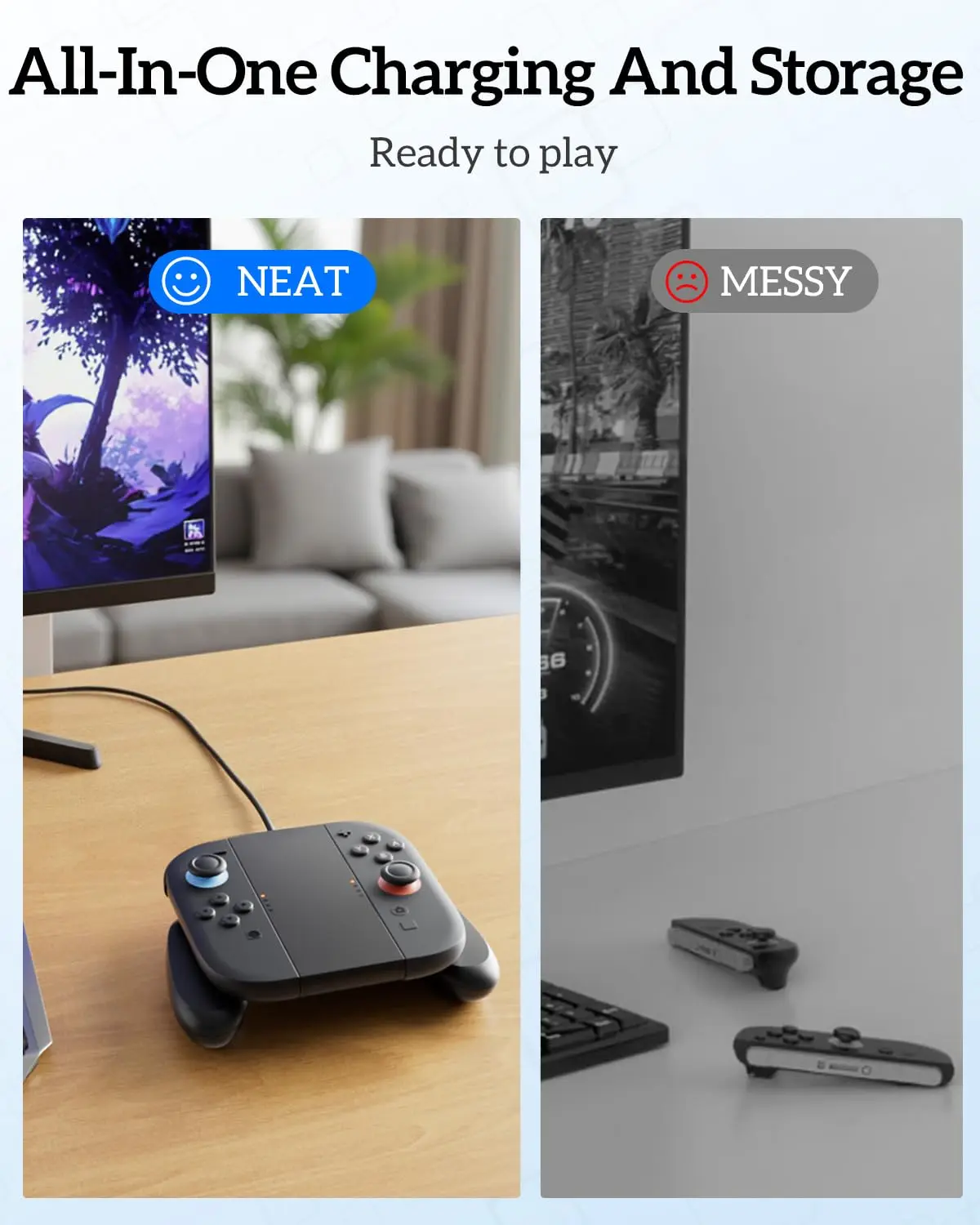 【Custom Fit for Switch 2 Joy-Con 】: TanReginal charger grip is designed for Nintendo Switch 2 Joy-Con controllers.When the Joy-Con runs out of power you can still play the game with our charging grip. It's also a perfect Joy-Con controller grip for Switch 2 Gamer when not charging. Charging,storage and comfortable grip all in one.