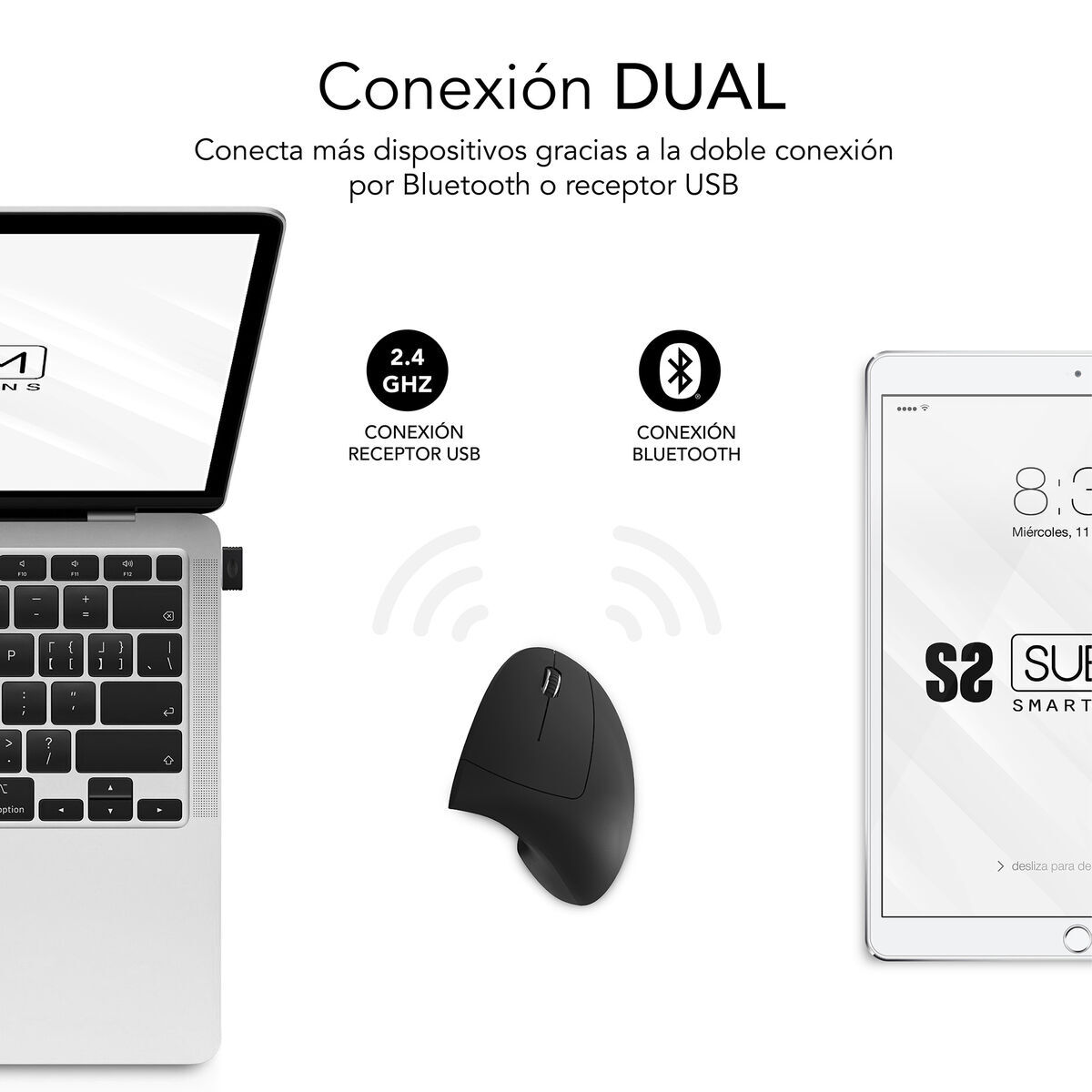 Mouse Ergonomico Ottico Subblim SUBMO-EDGVW01 Nero 1600 dpi