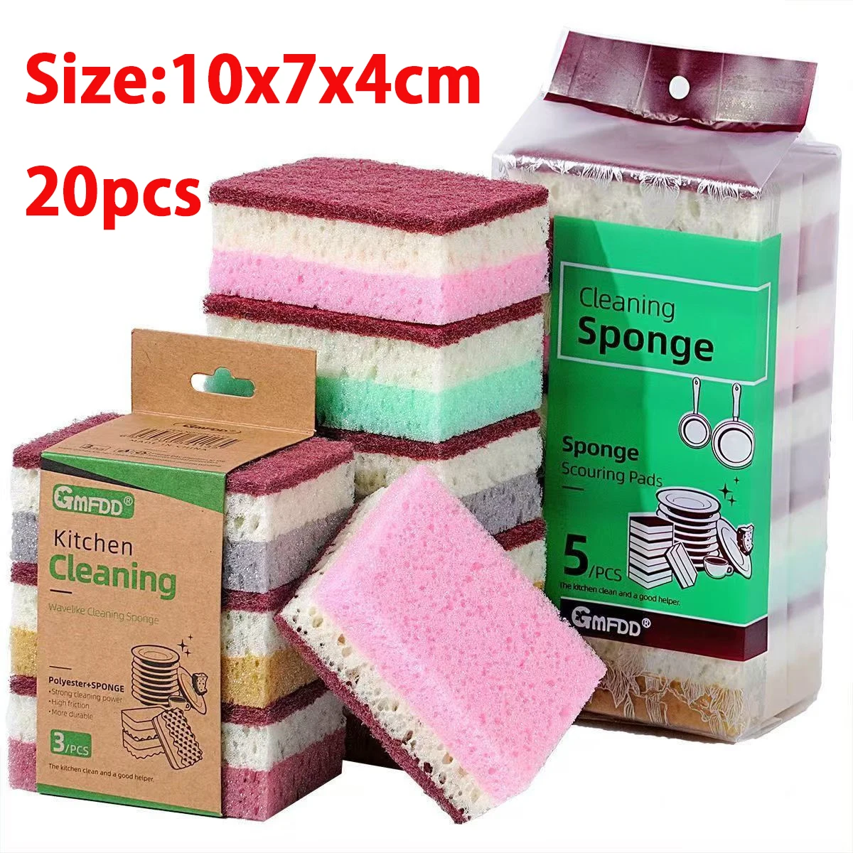 Panno per pulizia in spugna ad alta densità da 20 pezzi, panno per lavare i piatti, forniture per cucina e catering non grasse, spazzola in spugna, pentola e ciotola