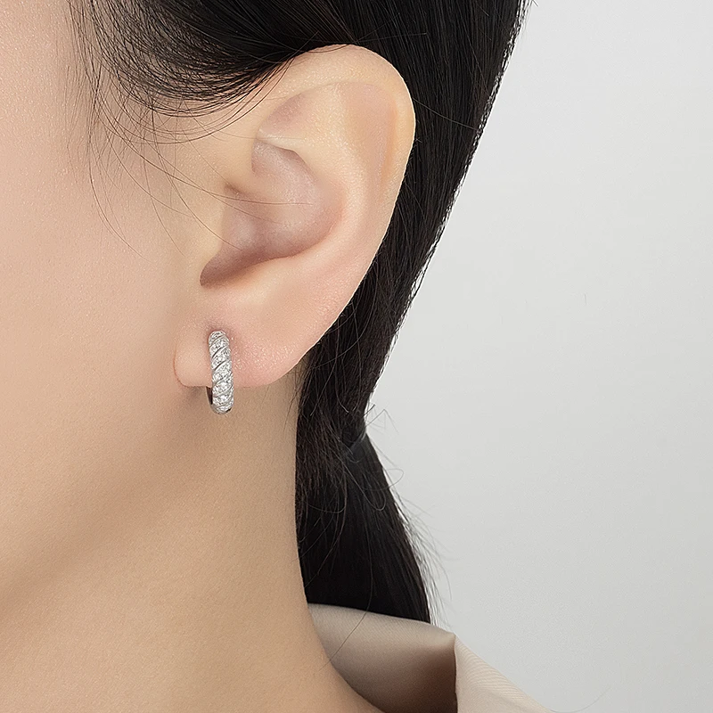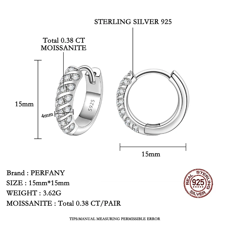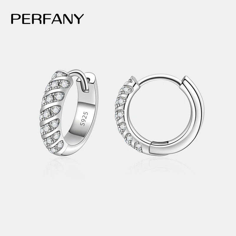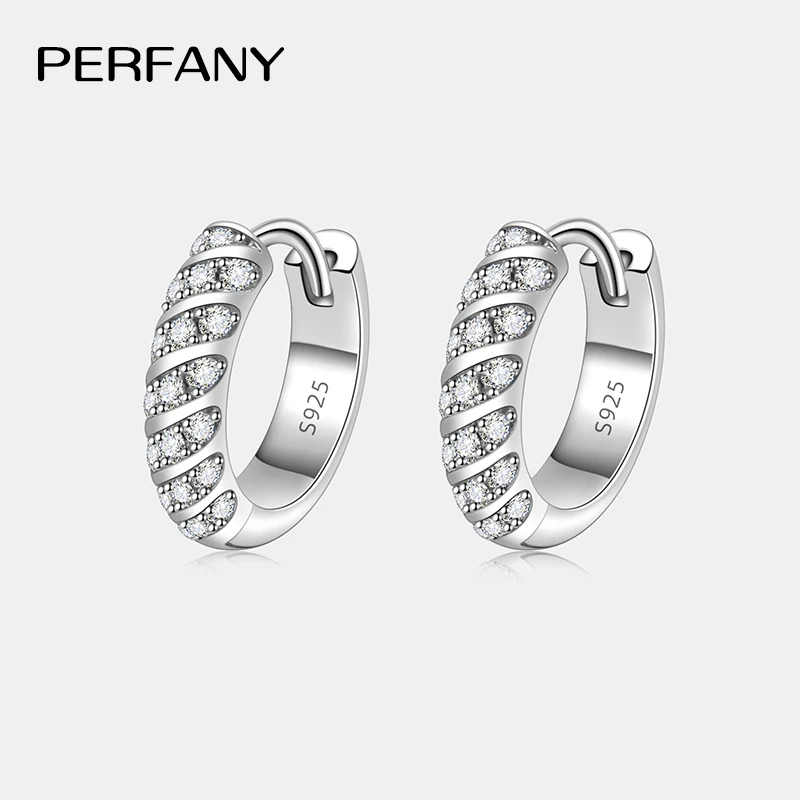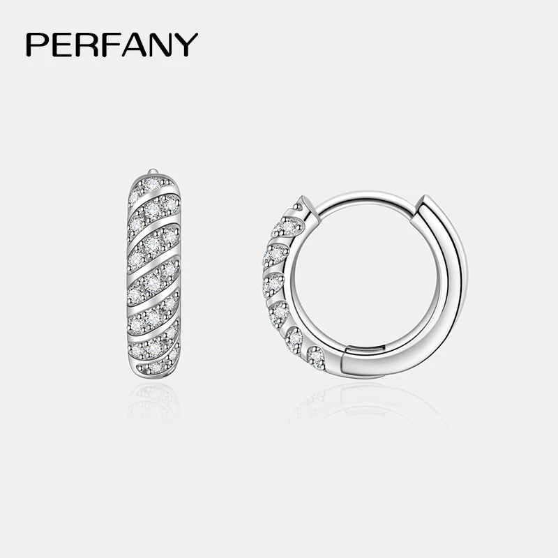 PERFANY All Moissanite Hoop Earrings Women S925 Pure Silver Laboratory Diamond Fashion Wedding Party Jewelry