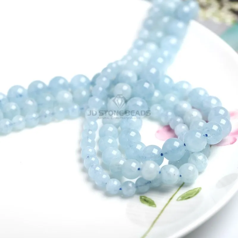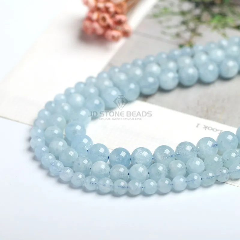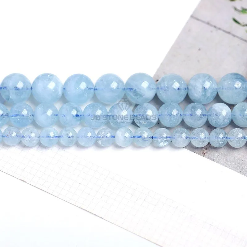 Pietra naturale blu acquamarina rotonda distanziatore sciolto perline lisce pietra preziosa di acqua di mare per la creazione di gioielli 4 6 8 10mm accessori fai da te