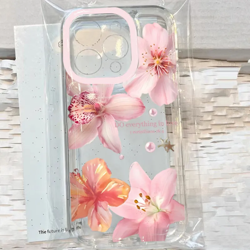 Pink Lily Flower Pattern Phone Case For iPhone 16 17 16e 15 14 13 12 11 Pro Max X XR XSMax 7 8 Plus SE2 Transparent Soft Cover