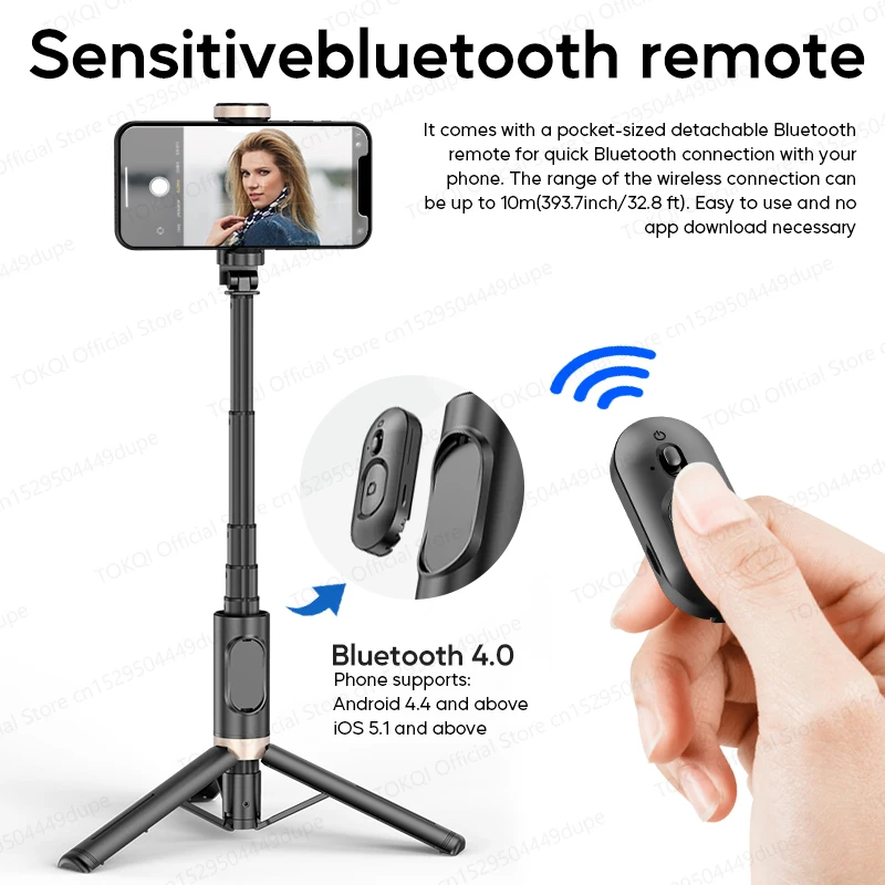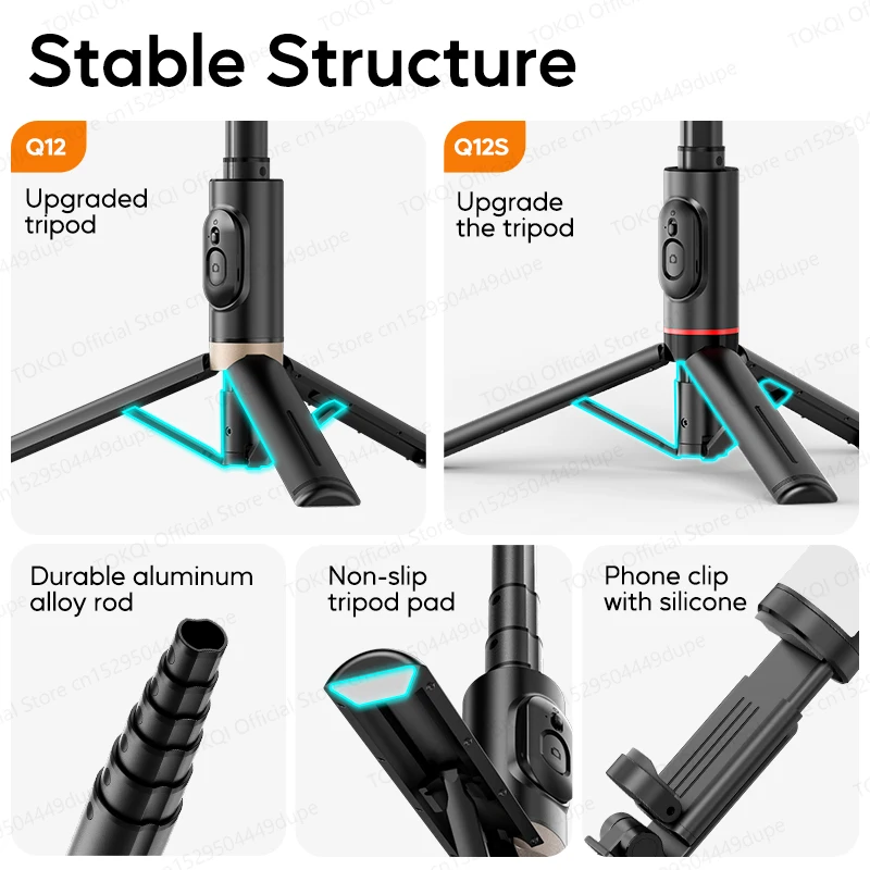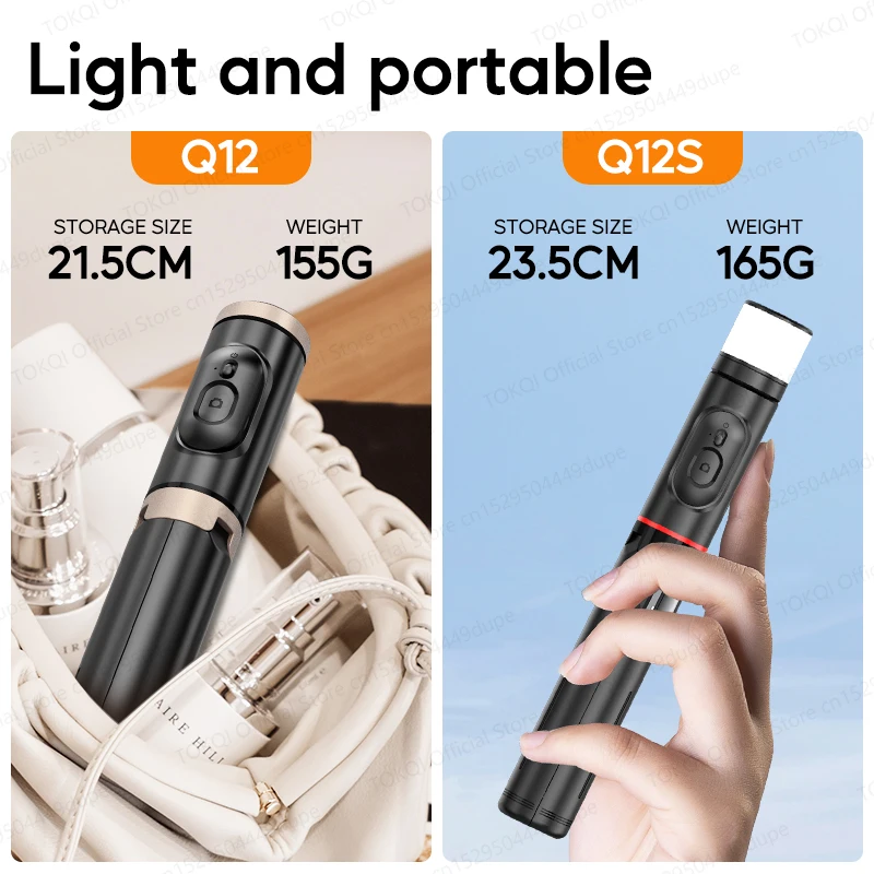 Q12/Q12s Wireless Bluetooth Selfie Stick Tripod for Smartphones Stable and Balanced Shooting, with Hidden Mount Portable Bracket