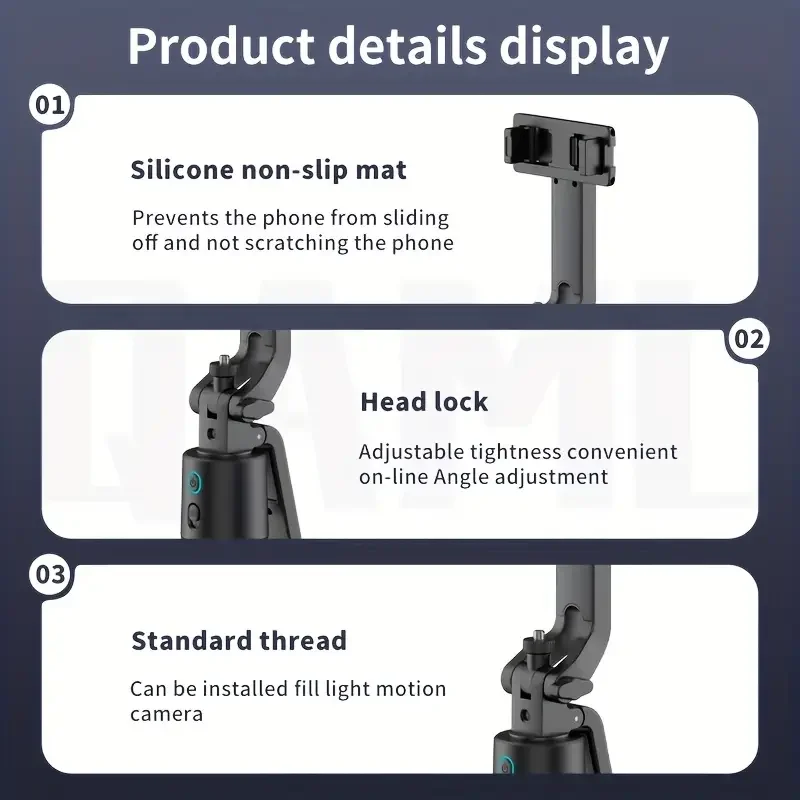 QAML 2025 NEW Q13 Aluminum Alloy Selfie Stick Tripod with 360° Face Recognition Follow Mode, Multi-Function Phone Holder with