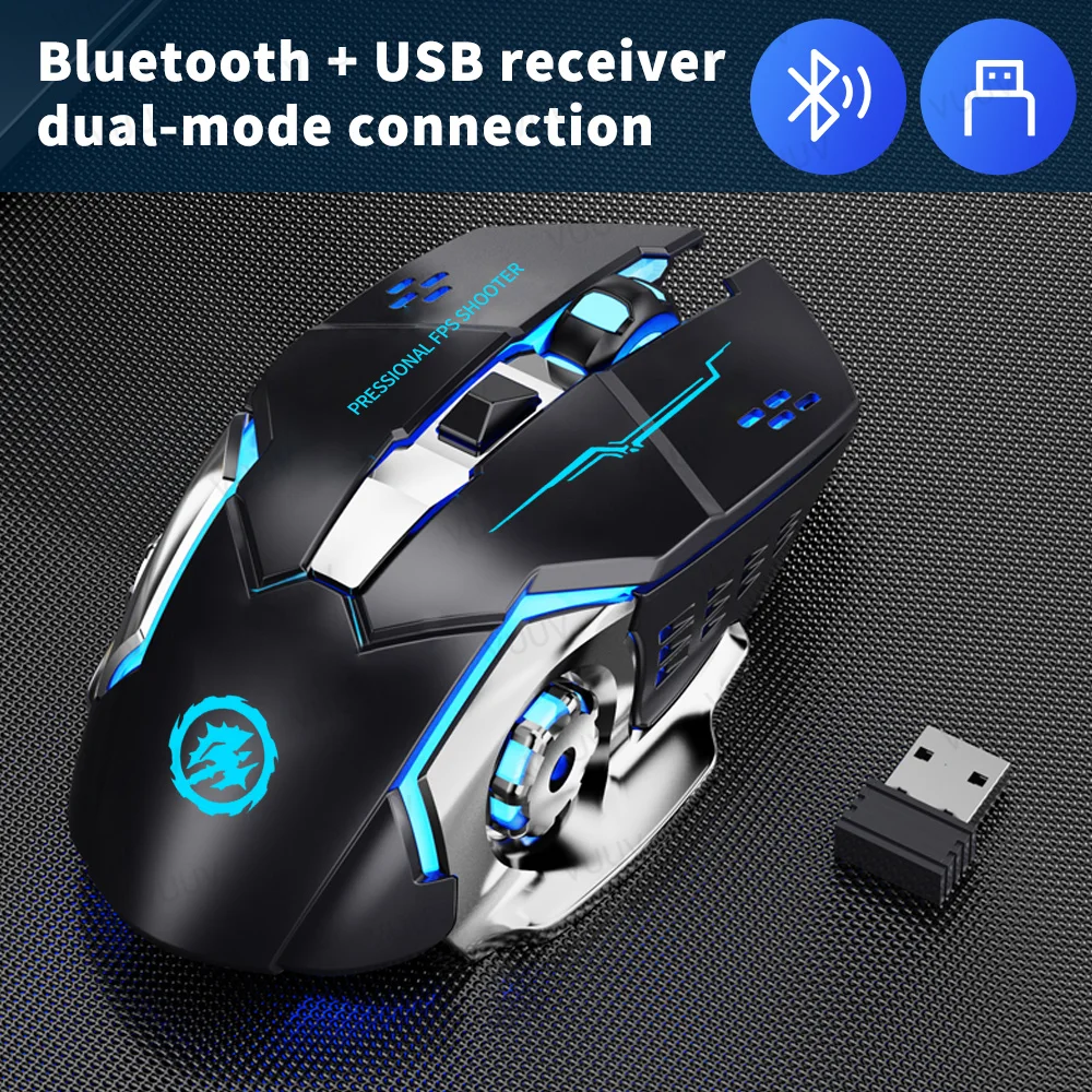 Rechargeable Bluetooth Wireless Mouse with 2.4G USB for Laptop Macbook PC Computer Backlight Gaming Mouse for iPad Tablet Phone