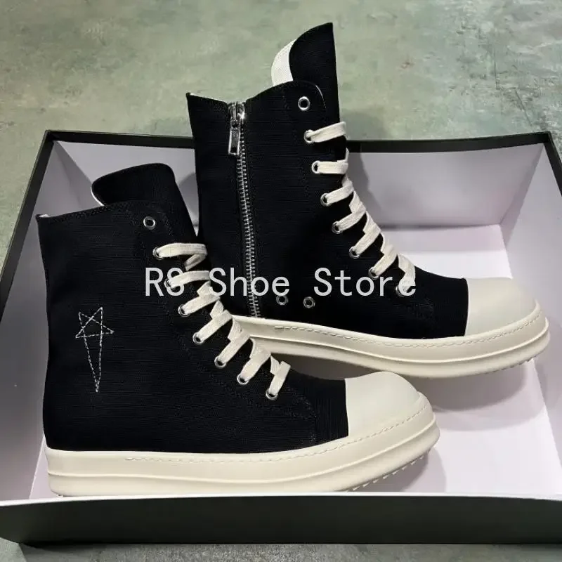 Ro Classic Design Black Canvas Boot High Top Shoe Men Casual Shoes Luxury Zipper Women Sneaker s Ankle Boots Sneakers