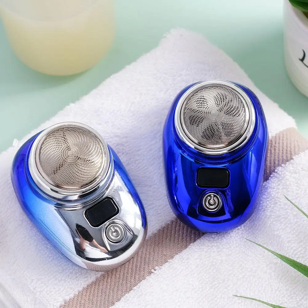 Strumento da barba da uomo Rasoio elettrico portatile ricaricabile USB con display a batteria a LED per uomo Mini rasoio rotante da viaggio impermeabile