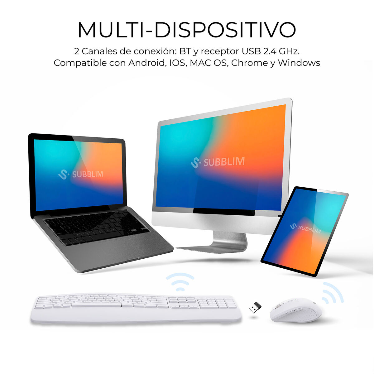 Il combo OFFICE PROWAVE di Subblim è un set avanzato progettato per offrire un’esperienza d’uso comoda ed efficiente in ambienti d’ufficio o lavoro da remoto, integrando una tastiera e mouse con connessione wireless Bluetooth per maggiore libertà e ordine nello spazio di lavoro. La tastiera è di tipo QWERTY spagnolo con design completo che include un tastierino numerico, ideale per attività che richiedono un rapido inserimento di dati numerici e ampio utilizzo di funzioni in programmi d’ufficio. La finitura in colore bianco conferisce uno stile moderno e pulito, adatto a qualsiasi ambiente professionale o domestico. Il mouse abbinato si distingue per l’alta precisione, con sensibilità regolabile fino a 3200 DPI, permettendo movimenti fluidi e controllo preciso, adatto sia a lavori dettagliati sia a navigazione veloce. La connettività Bluetooth garantisce compatibilità con numerosi dispositivi senza bisogno di cavi aggiuntivi, facilitando mobilità e organizzazione dello spazio. Questo combo rappresenta una soluzione pratica e funzionale, curando aspetti chiave come ergonomia, precisione e facilità d’uso, senza rinunciare a stile e modernità. In sintesi, il SUBBLIM Combo Dual OFFICE PROWAVE WHITE offre un equilibrio tra prestazioni e design per chi cerca un equipaggiamento affidabile e versatile nelle attività quotidiane.