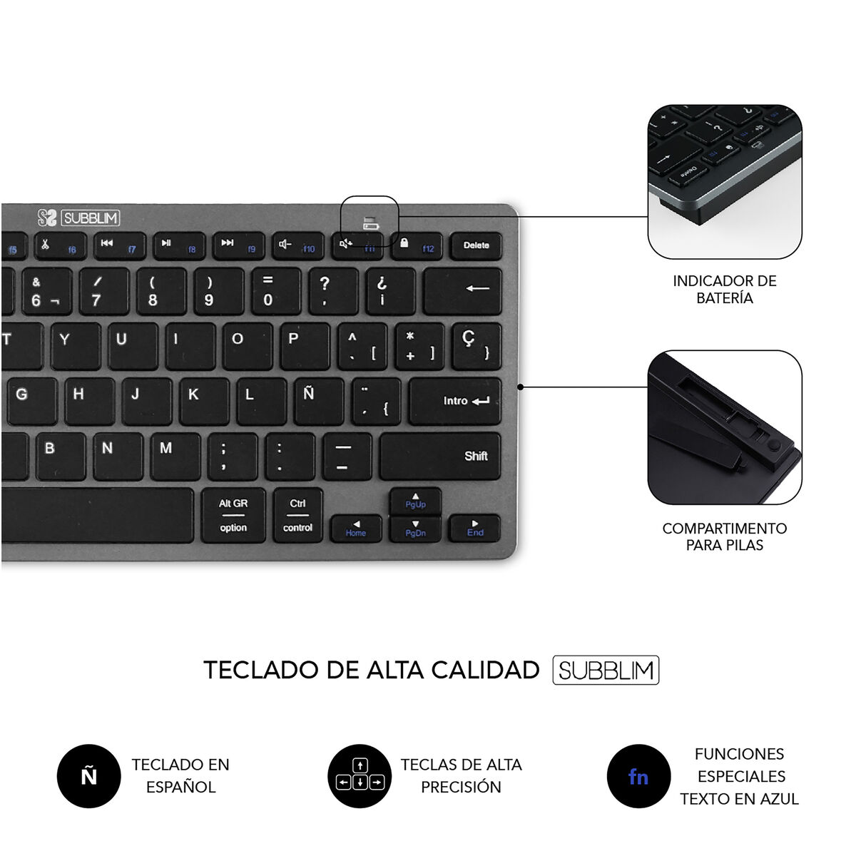 La tastiera e mouse wireless Subblim OCO020 è un combo multidispositivo compatto progettato per offrire versatilità e comodità in ambienti di lavoro e svago. Con un design funzionale in colori nero e grigio, questo set si distingue per la connettività Bluetooth, che consente una connessione rapida e stabile senza cavi, ideale per l’uso con computer, tablet o smartphone compatibili. La tastiera ha una disposizione QWERTY in spagnolo, facilitando una scrittura precisa e comoda adatta al mercato di lingua spagnola. Questo combo è pensato per offrire un’esperienza pratica ed efficiente, integrando caratteristiche come la resistenza all’acqua, che protegge da possibili versamenti accidentali, e il sistema ricaricabile, garantendo un’autonomia prolungata senza costi per batterie. Con un totale di 11 pezzi che compongono il set, il prodotto è compatto e facile da trasportare, perfetto per chi necessita di uno spazio di lavoro ordinato e senza fili. La qualità dei materiali e il design funzionale rendono questa tastiera e mouse Subblim una scelta adatta per utenti che cercano una soluzione tecnologica versatile, pratica e comoda per diversi dispositivi. In sintesi, il combo Subblim OCO020 offre un’esperienza wireless efficiente e adatta alle esigenze attuali di connettività ed ergonomia.