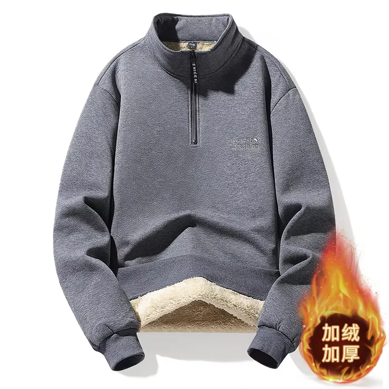 Winter Sweatshirt Men Long Sleeves Men Fleece Lined Warm Sweatshirt Pure Color Quarter Zip Sweatshirt Thicken Plus Size 8XL