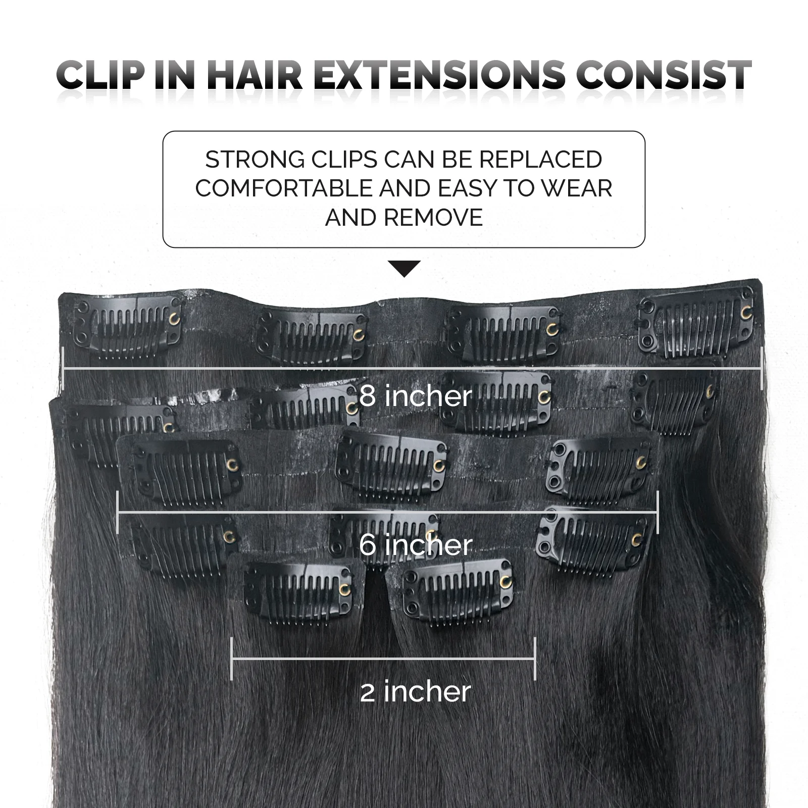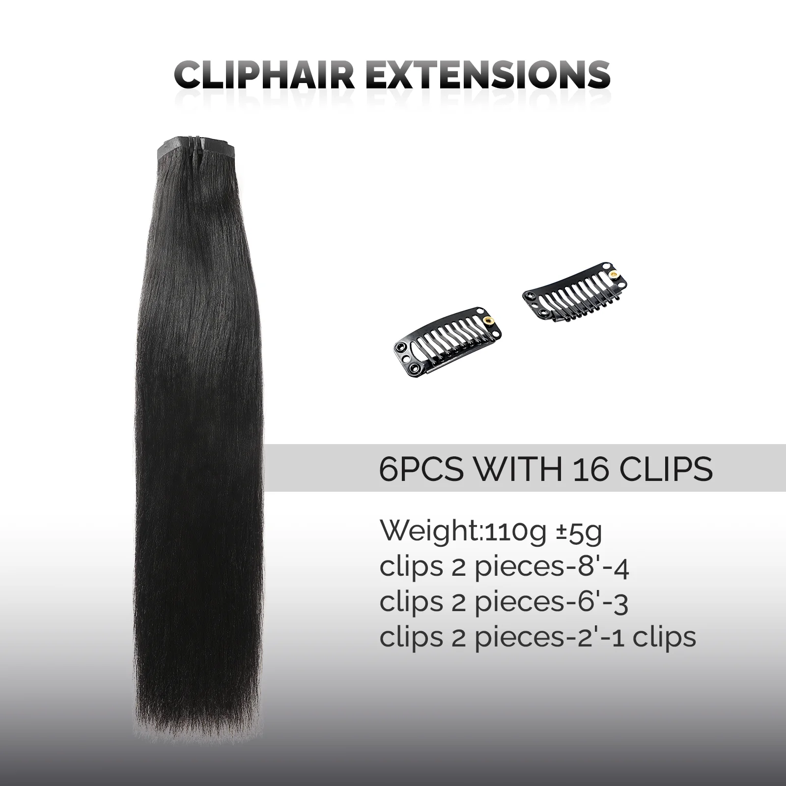 Yaki Straight 100% Remy Clip Ins Human Hair 110g Human Hair Extension To PU Clips Seamless Double Weft For Daily Party Wedding