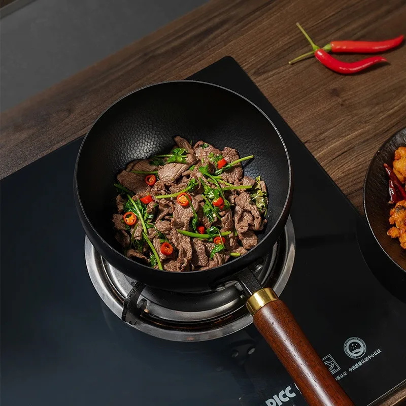 Zhangqiu Pentola in Ferro Pancia Grande Wok Forgiato Artigianale Mini Piccola Pentola in Ferro Pentola da Cucina Domestica Senza Rivestimento Antiaderente