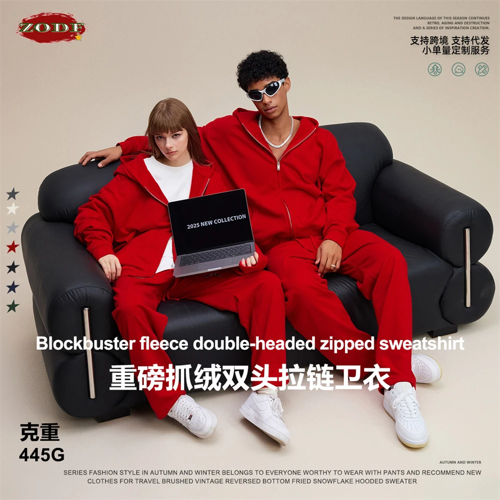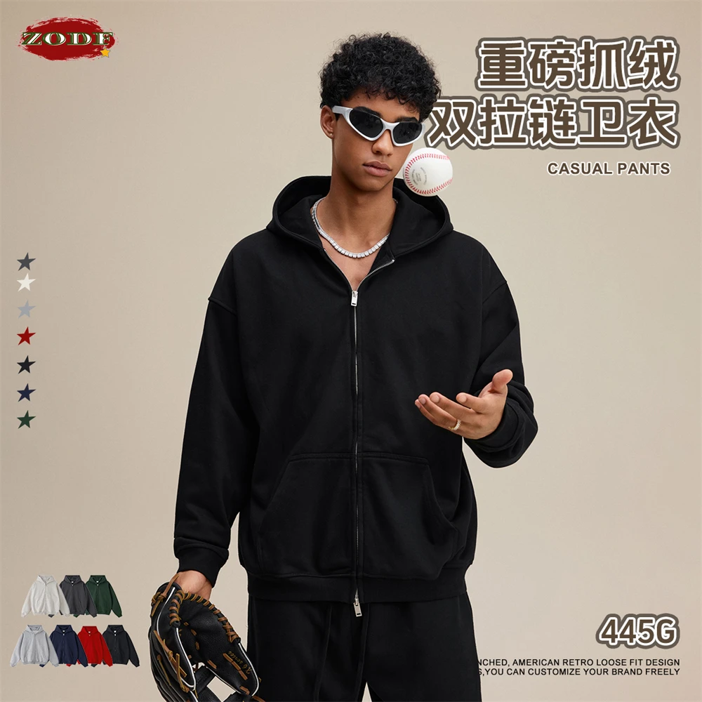 ZODF Trendy 2025 Heavy Weight 445gsm Zipper Hoodies For Man Unisex Casual Zip-up Hooded SweatShirts Coats HY1102